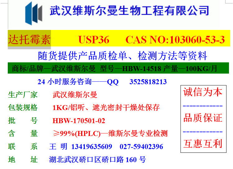 | HBW-14518 | 維斯爾曼 | 99% | 1KG/鋁聽 | 需詢盤 | 3天 |