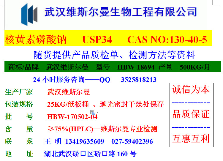 | 英文名 | Riboflavin-5-phosphate sodium | ||||
