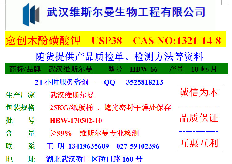 | HBW-66 | 維斯?fàn)柭?/th> | 99% | 25KG/紙板桶 | 需詢盤 | 1天 |