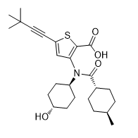 | 英文名 | 5-(3,3-dimethylbut-1-ynyl)-3-[(4-hydroxycyclohexyl)-(4-methylcyclohexanecarbonyl)amino]thiophene-2-carboxylic acid | ||||