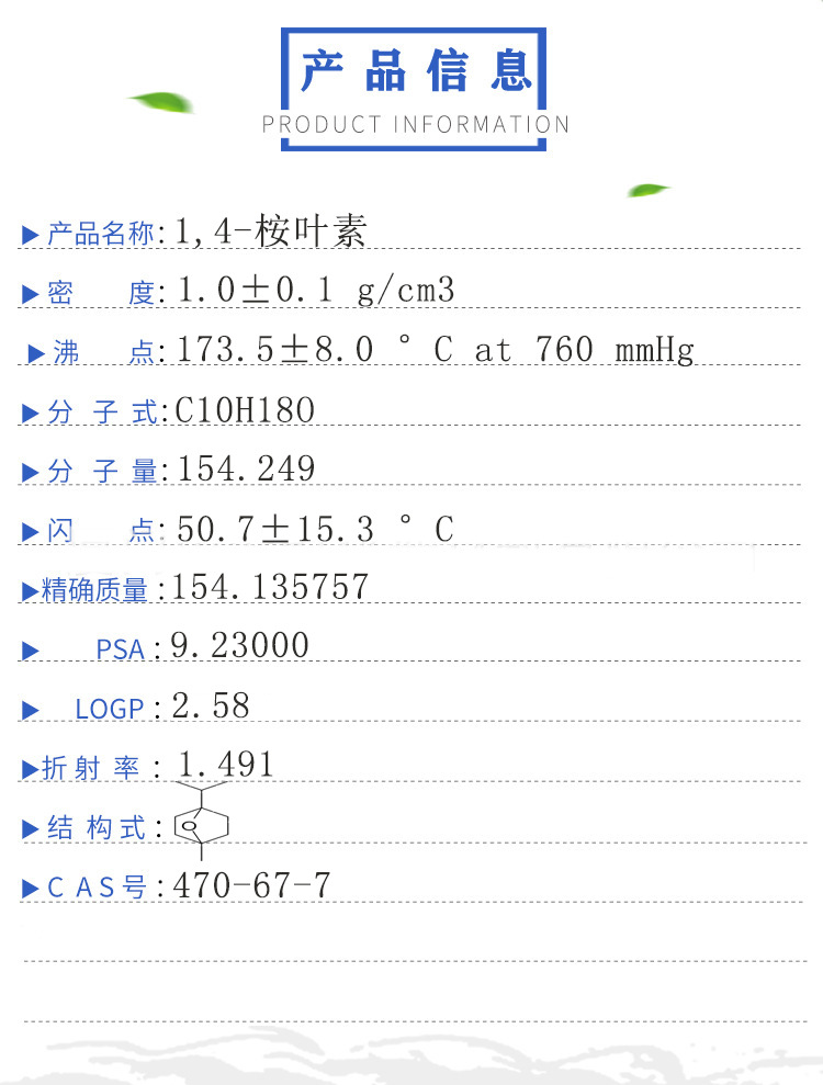 | 英文名 | 1-methyl-4-propan-2-yl-7-oxabicyclo[2.2.1]heptane | ||||