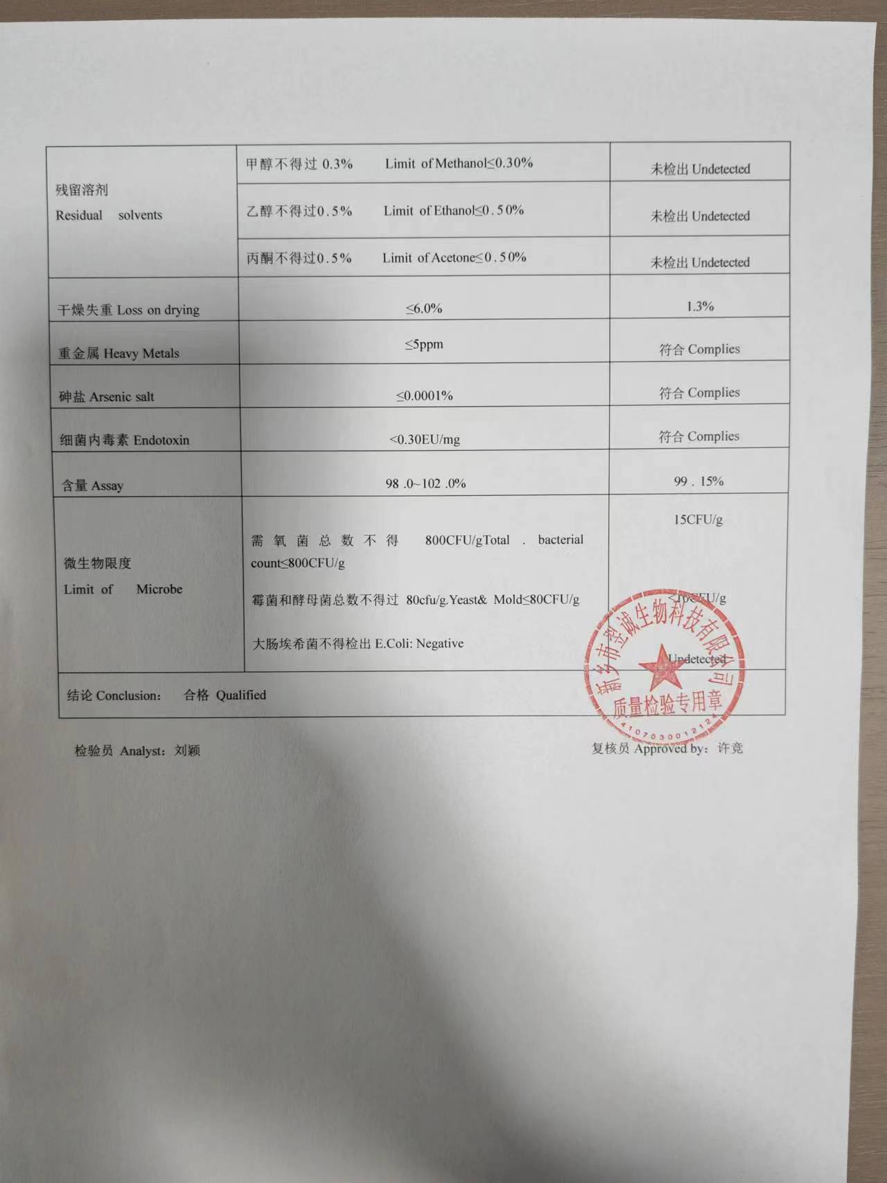 | 26 | --- | ≥98.0% | 25kg/桶 10kg/桶 1kg/袋 | ¥1250.00元/公斤 | --- |