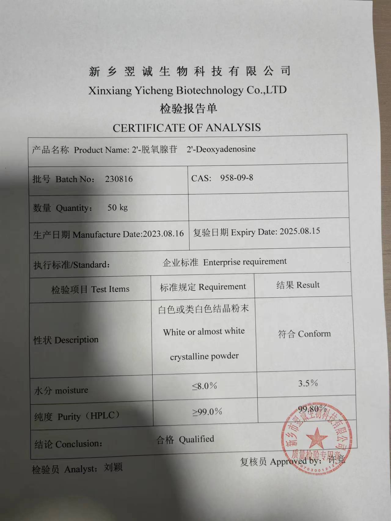 | 中文名 | 2’-脫氧腺苷 | ||||
