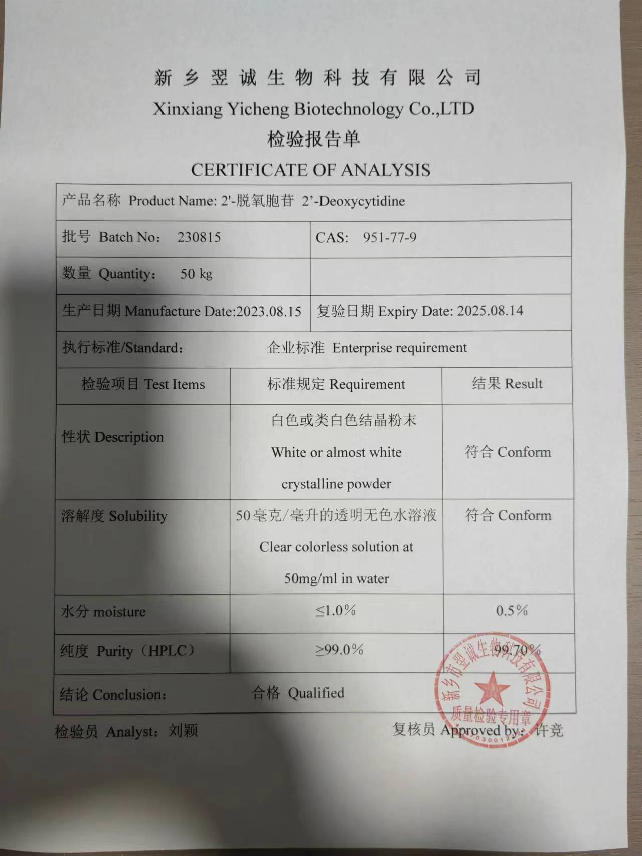 | D-05 | 翌誠 | ≥99.0% | 1kg/袋 2kg/袋 | ¥2700.00元/公斤 | --- |