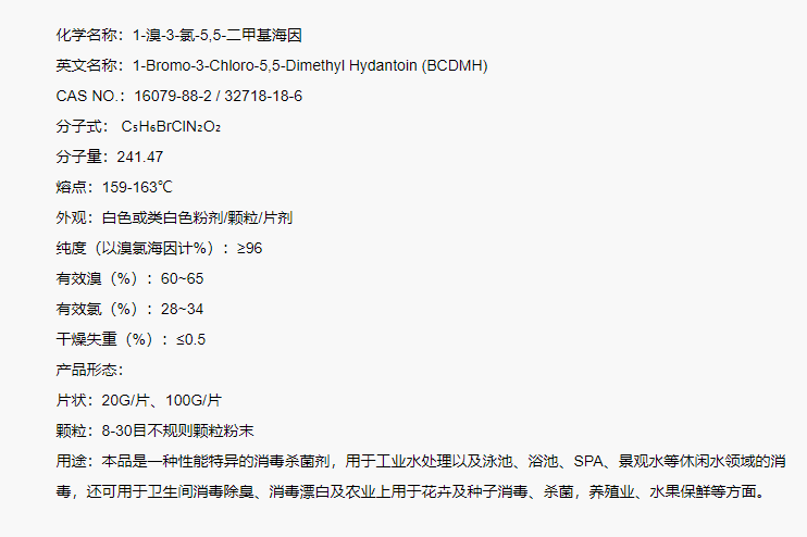 | 中文名 | 1-溴-3-氯-5,5-二甲基海因 | ||||