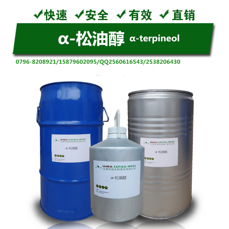 【用 途】松油醇是用優(yōu)質(zhì)松節(jié)油經(jīng)水合、脫水反應(yīng)而得,產(chǎn)品為無色透明稠厚液體,具有紫丁香香氣及甜味,用于調(diào)配紫丁香等香型 的高級香皂、化妝品香料、香精及調(diào)配香料,也用于制藥、油墨、儀表及器皿色彩溶劑