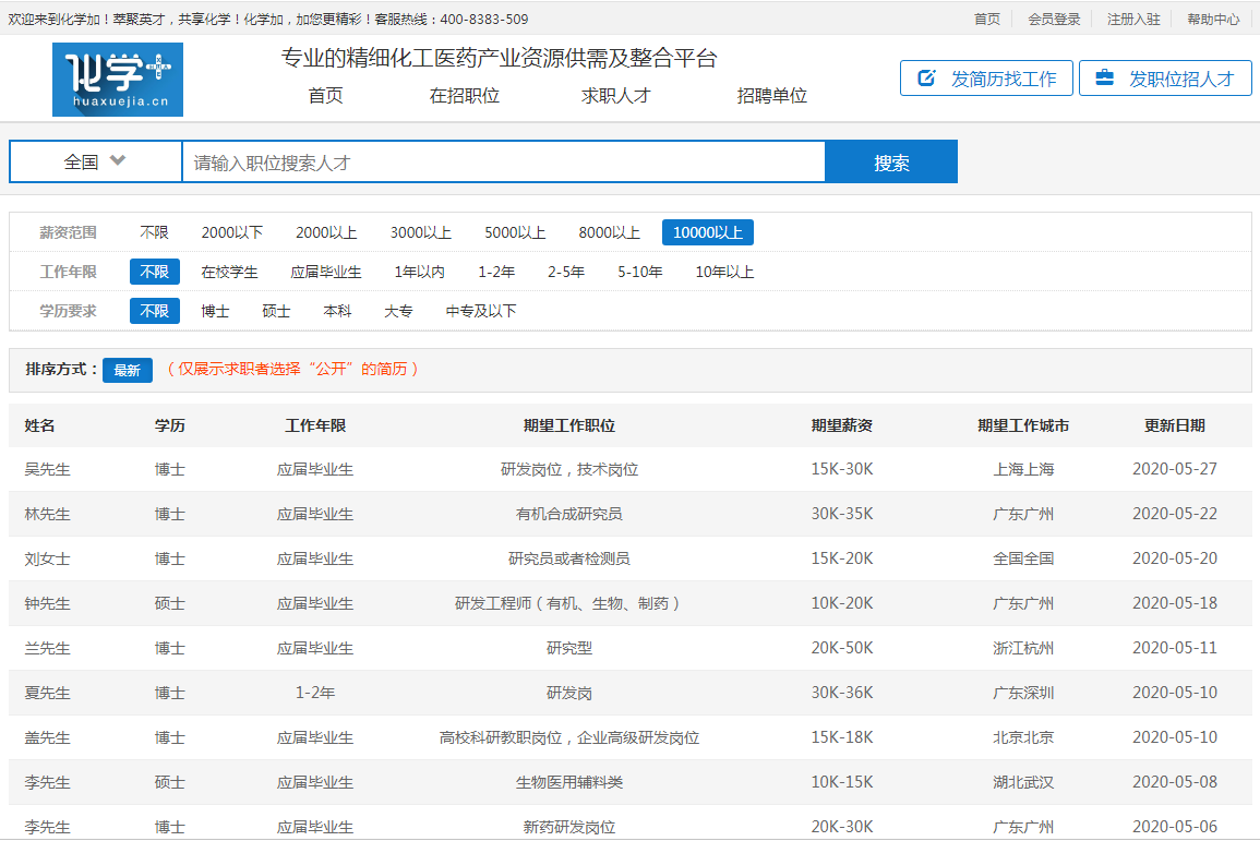 2020屆化學化工醫(yī)藥領域本碩博畢業(yè)生、該領域企業(yè)負責招聘的高管、HR,高校負責就業(yè)指導的老師,化學加網工作人員