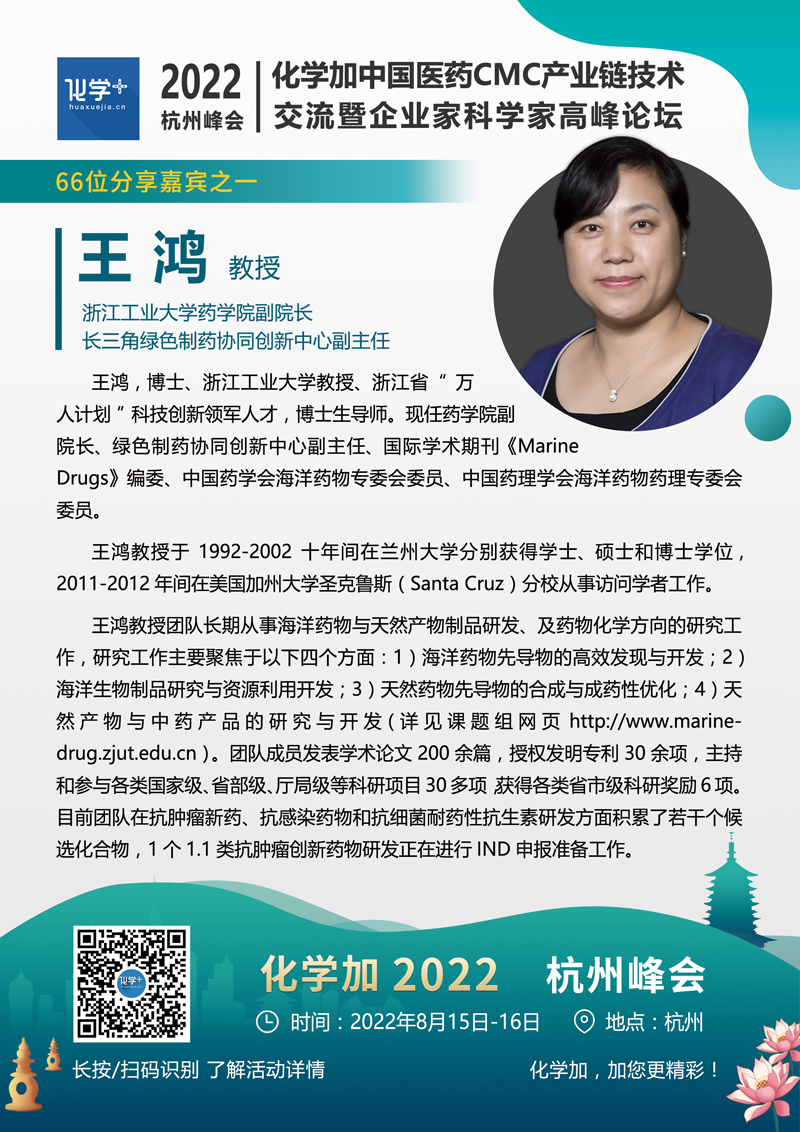 44.浙江工業(yè)大學(xué)藥學(xué)院副院長、長三角綠色制藥協(xié)同創(chuàng)新中心副主任、浙江省萬人計劃科技創(chuàng)新領(lǐng)軍人才王鴻教授