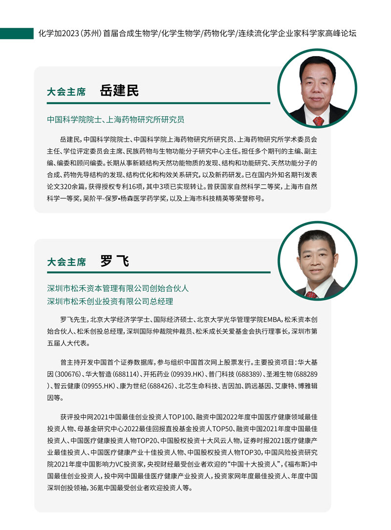 導(dǎo)讀:2023年3月27-28日,化學(xué)加2023蘇州峰會(huì)“首屆合成生物學(xué)/化學(xué)生物學(xué)/藥物化學(xué)企業(yè)家科學(xué)家高峰論壇”順利舉辦,中國(guó)科學(xué)院院士、上海藥物研究所研究員岳建民,松禾資本創(chuàng)始合伙人羅飛擔(dān)任本次大會(huì)主席,50余位來(lái)自合成生物學(xué)、化學(xué)生物學(xué)、藥物化學(xué)領(lǐng)域的企業(yè)家科學(xué)家做了主題報(bào)告,吸引了超過(guò)1700余位產(chǎn)業(yè)觀眾報(bào)名參會(huì)。