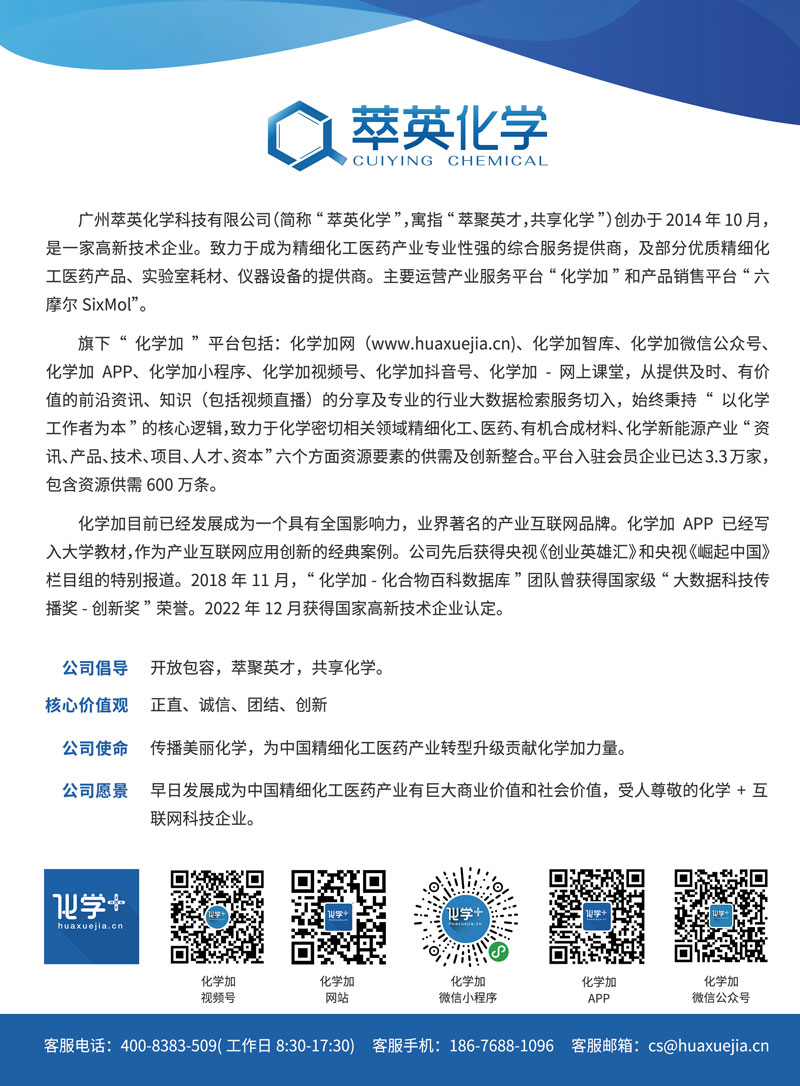 聲明:化學(xué)加刊發(fā)或者轉(zhuǎn)載此文只是出于傳遞、分享更多信息之目的,并不意味認(rèn)同其觀點(diǎn)或證實(shí)其描述。若有來(lái)源標(biāo)注錯(cuò)誤或侵犯了您的合法權(quán)益,請(qǐng)作者持權(quán)屬證明與本網(wǎng)聯(lián)系,我們將及時(shí)更正、刪除,謝謝。 電話:18676881059,郵箱:gongjian@huaxuejia.cn