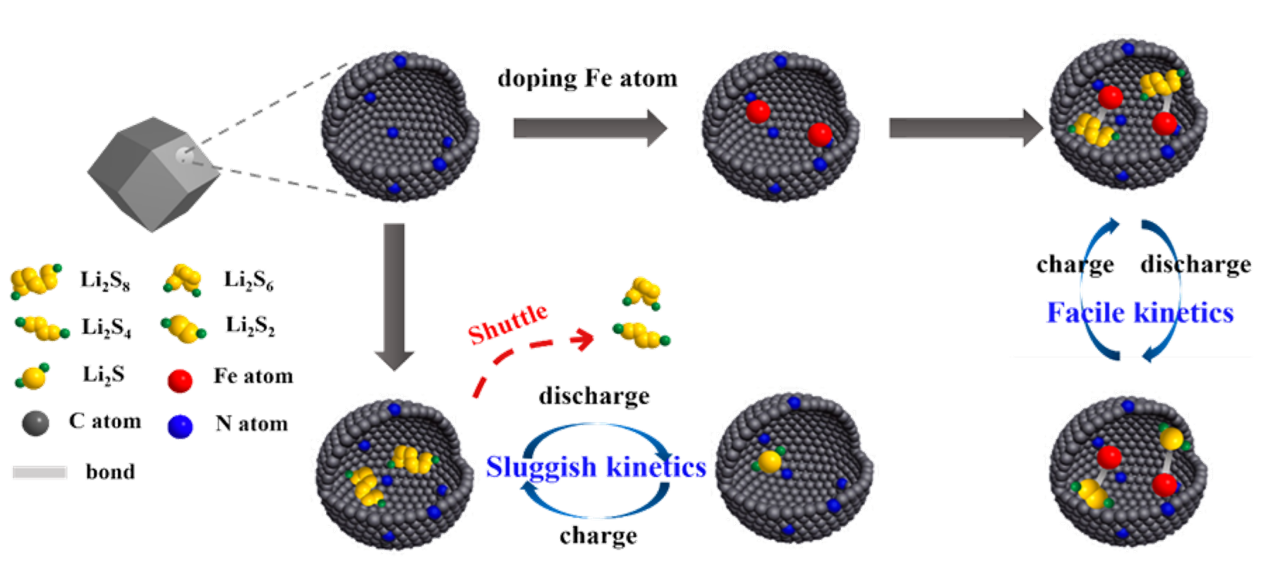 近日,青科大高分子學(xué)院山東省濰坊市高層次創(chuàng)新創(chuàng)業(yè)人才王存國博士(第一作者)指導(dǎo)碩士研究生宋和偉(第二作者)與中科院蘇州納米所劉立偉、李奇兩位研究員課題組聯(lián)合研發(fā),在大容量鋰/硫電池方面取得新進展,提高了硫基復(fù)合電極材料的電導(dǎo)率,抑制了電池充放電過程中的穿梭效應(yīng)及體積膨脹等現(xiàn)象,團隊相關(guān)工作在英國皇家化學(xué)會(RSC)著名期刊《Journal of Materials Chemistry A》(2020, 8, 3421-3430,IF=10.73,中科院1區(qū),Doi: : 10.1039/c9ta11680j),以Iron single-atom catalyst anchored on nitrogen-rich MOF-derived carbon nanocage to accelerate polysulfide redox conversion for lithium sulfur batteries為題發(fā)表。(青島科技大學(xué)為第一合作單位。)