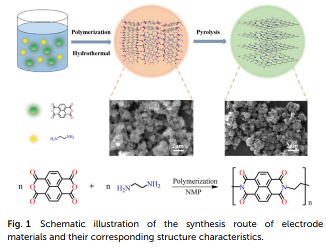 文中采用1、4、5、8-萘四甲酸二酐(NTCDA)為原材料,以聚酰亞胺(PI-2)為正極,以預(yù)先嵌入鈉離子的碳化聚酰亞胺(CPI)為負極,設(shè)計和開發(fā)了一種新型全塑鈉離子電池,鈉離子全電池在電流密度為100 mA/ g放電時,初始容量達157 mAh/ g,其平均電壓約為1.47 V,能量密度達254 Wh/ kg, 而且功率密度達614 W/kg,降低了有機物電極材料存在溶解性等缺點,為鈉離子全電池在實際中得到應(yīng)用提供了可行性。