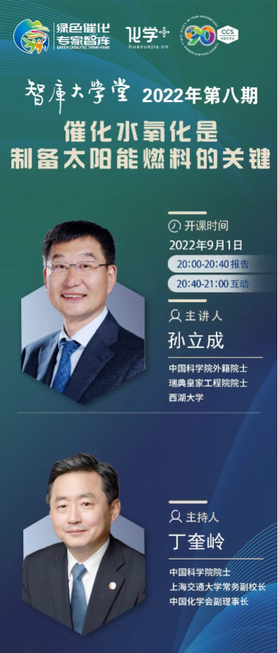 【9.1直播】智庫大學堂08期——孫立成院士/丁奎嶺院士:催化水氧化是制備太陽能燃料的關鍵