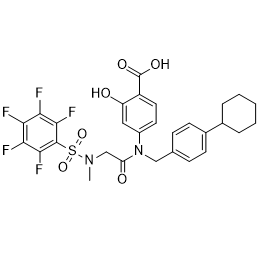 | 英文名 | Benzoic acid, 4-[[(4-cyclohexylphenyl)methyl][2-[methyl[(2,3,4,5,6-pentafluorophenyl)sulfonyl]amino]acetyl]amino]-2-hydroxy- | ||||