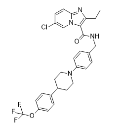 | 英文名 | Imidazo[1,2-a]pyridine-3-carboxamide, 6-chloro-2-ethyl-N-[[4-[4-[4-(trifluoromethoxy)phenyl]-1-piperidinyl]phenyl]methyl]- | ||||