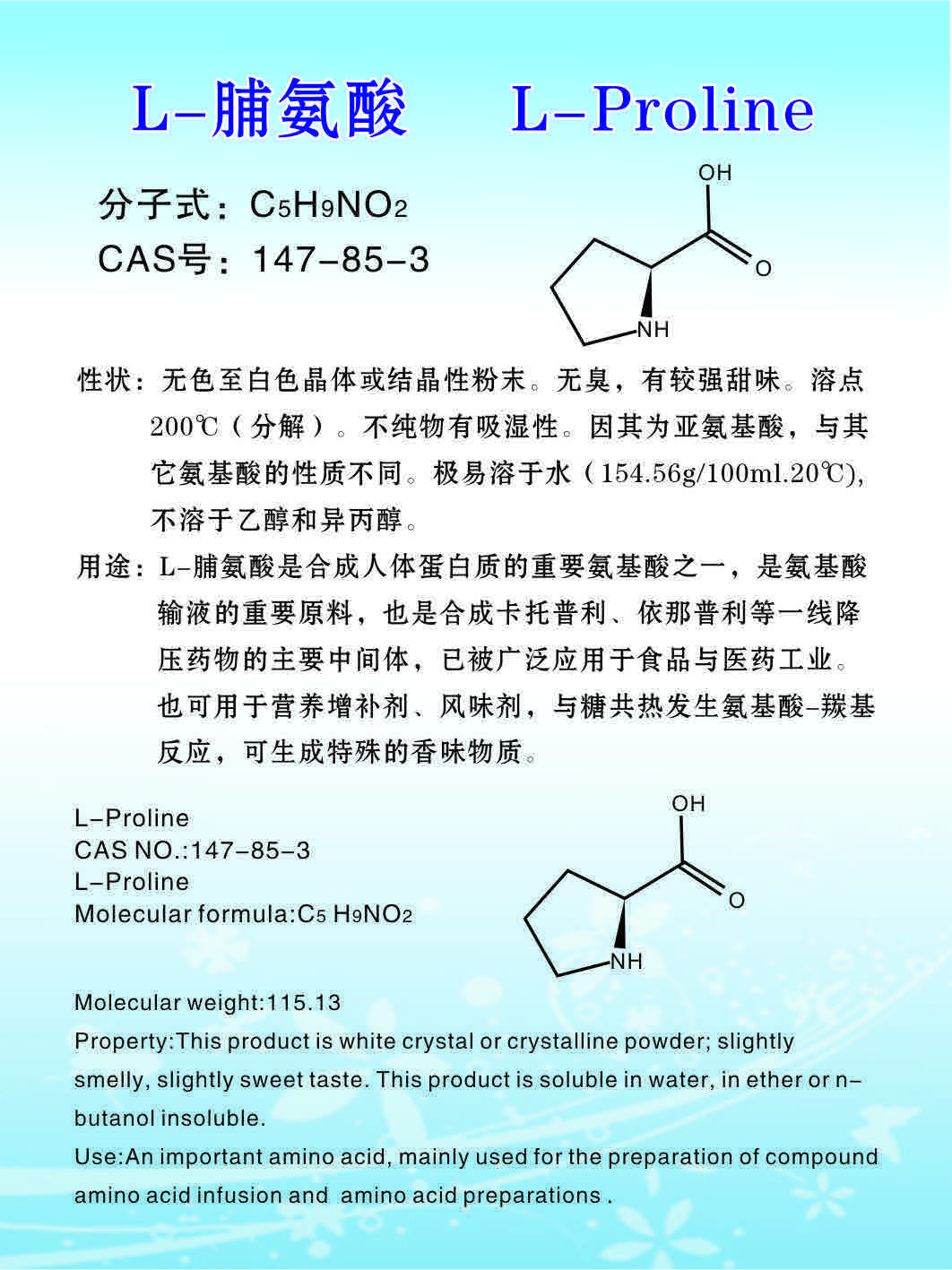 | 英文名 | 4-hydroxy-L-proline | ||||
