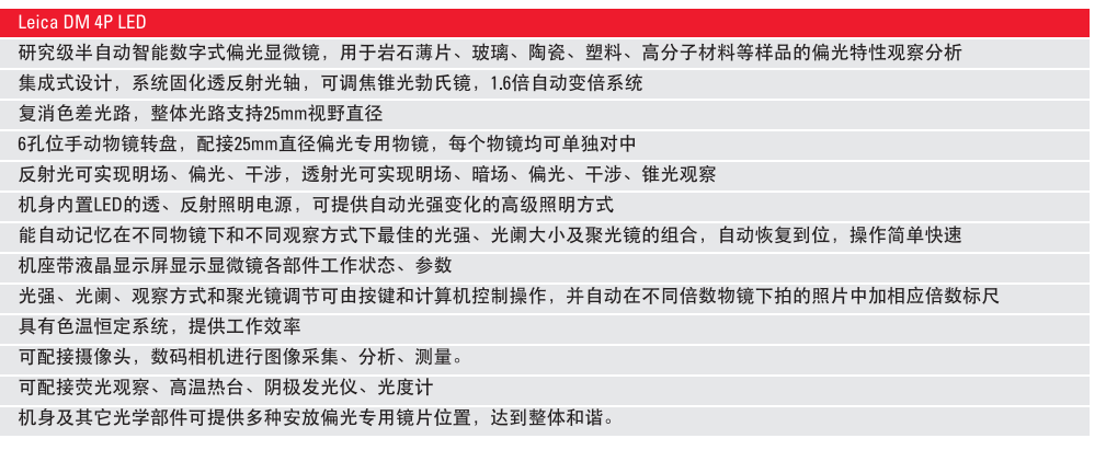 Leica DM 4P LED 半自動智能數(shù)字式偏光顯微鏡Leica DM 4P LED 半自動智能數(shù)字式偏光顯微鏡