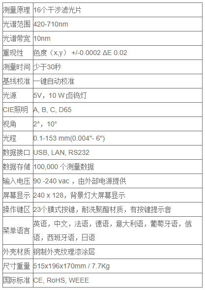 l 內(nèi)置多種色度標(biāo)準(zhǔn)供用戶快速選擇