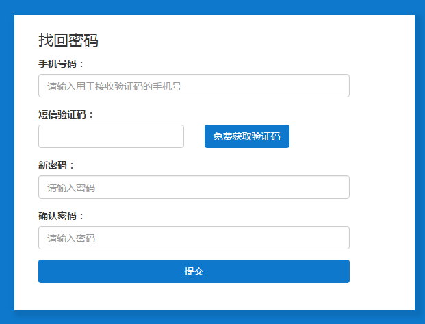 步驟二:填入用于接收驗證碼的手機(jī)號,并點(diǎn)擊“免費(fèi)獲取驗證碼”,化學(xué)加網(wǎng)將向您的手機(jī)發(fā)送一條含有驗證碼的短信。在您收到短信后,將短信中的驗證碼填寫到頁面中。輸入并確認(rèn)新密碼,即可將原密碼替換成新密碼。兩次輸入的密碼必須完全相同,且不與原密碼重復(fù)。點(diǎn)擊“提交”按鈕。