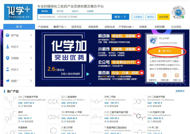 步驟二:注冊后在首頁點(diǎn)擊“用戶中心”。