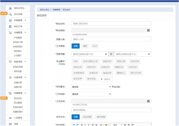 步驟四:填寫招聘職位相關(guān)信息后,發(fā)布招聘信息。
