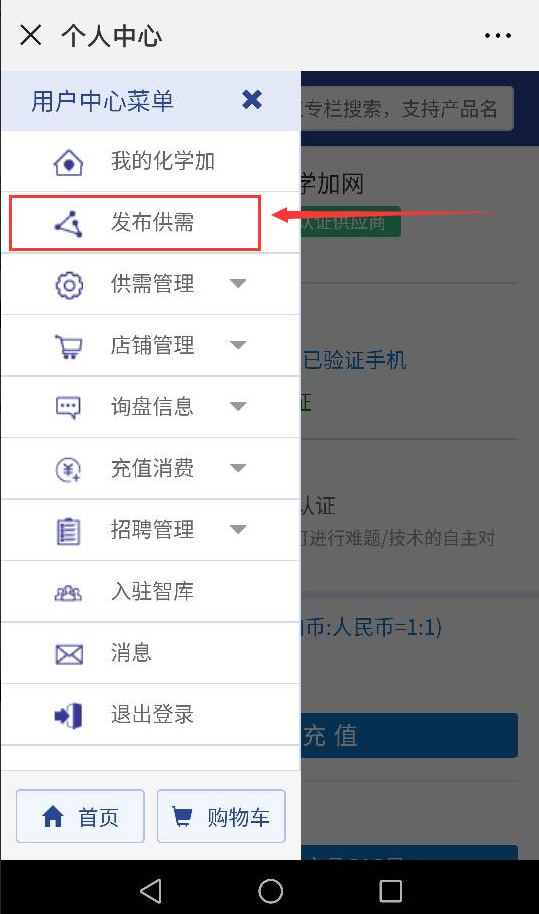 1.企業(yè)認(rèn)證通過審核后,可以發(fā)布供需。在移動端首頁,中間菜單區(qū)有個“發(fā)布供需”的按鈕,點(diǎn)擊即可進(jìn)入發(fā)布供需的頁面。