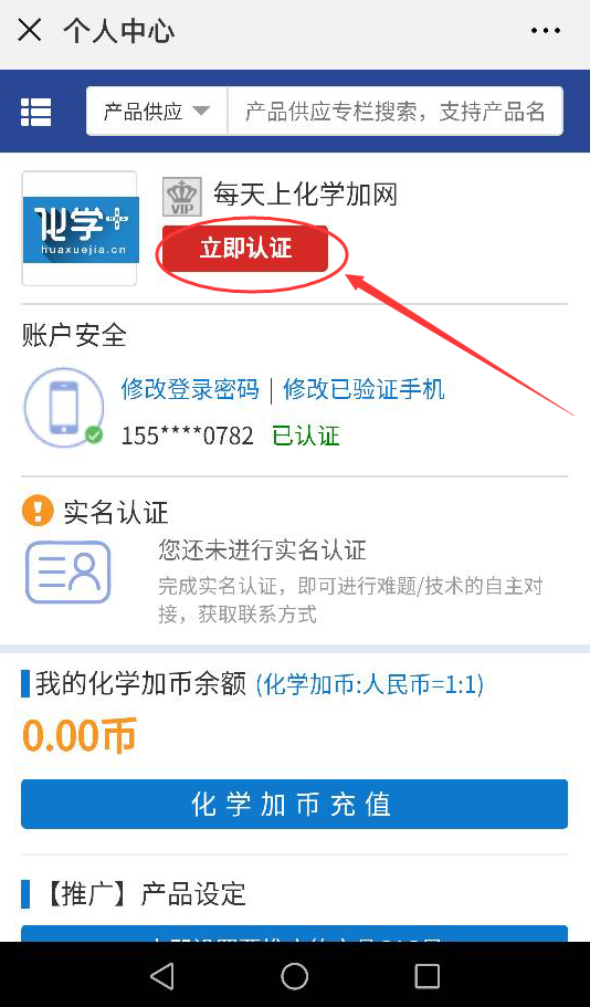 2.在個人中心如果有立即認(rèn)證的紅色按鈕,說明還未認(rèn)證,需要點(diǎn)擊立即認(rèn)證,填寫好企業(yè)資料提交審核來開通店鋪。