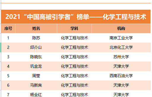 4月14日,愛思唯爾發(fā)布2021“中國高被引學(xué)者” 榜單,共計4701人上榜,來自523所高校、企業(yè)及科研機構(gòu),覆蓋了教育部10個學(xué)科領(lǐng)域、84個一級學(xué)科,其中化學(xué)工程與技術(shù)學(xué)科172人。...