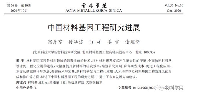 材料基因工程是材料領(lǐng)域的顛覆性前沿技術(shù),將對材料研發(fā)模式產(chǎn)生革命性的變革,全面加速材料從設(shè)計(jì)到工程化應(yīng)用的進(jìn)程,大幅度提升新材料的研發(fā)效率,縮短研發(fā)周期,降低研發(fā)成本,促進(jìn)工程化應(yīng)用。本文從基礎(chǔ)理論與...