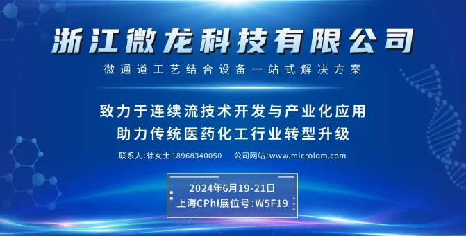浙江微龍科技有限公司,微通道工藝結(jié)合設(shè)備一站式解決方案 ,致力于連續(xù)流技術(shù)開發(fā)與產(chǎn)業(yè)化應(yīng)用,助力傳統(tǒng)醫(yī)藥化工行業(yè)轉(zhuǎn)型升級(jí)。2024年6月19-21日,上海CPhI展位號(hào) W5F19 。...