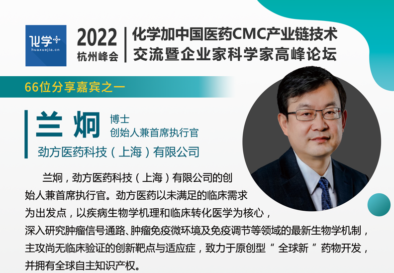 “化學(xué)加2022(杭州)中國醫(yī)藥CMC產(chǎn)業(yè)鏈技術(shù)交流暨企業(yè)家科學(xué)家高峰論壇”將于8月15-16日在杭州和達(dá)希爾頓逸林酒店(五星)舉辦,蘭炯博士為本次大會分享嘉賓之一。...