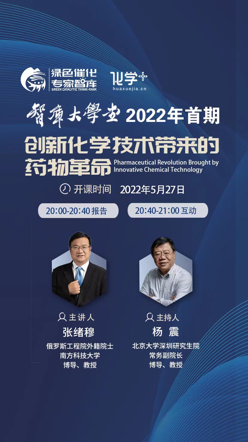 智庫大學(xué)堂2022年第1期線上公益講座,我們非常榮幸邀請到南方科技大學(xué)張緒穆院士作為嘉賓,他將以“綠色催化技術(shù)在制藥行業(yè)的應(yīng)用”為題,分享他的科研成果和思考?;瘜W(xué)加視頻號將全程直播,歡迎關(guān)注。...