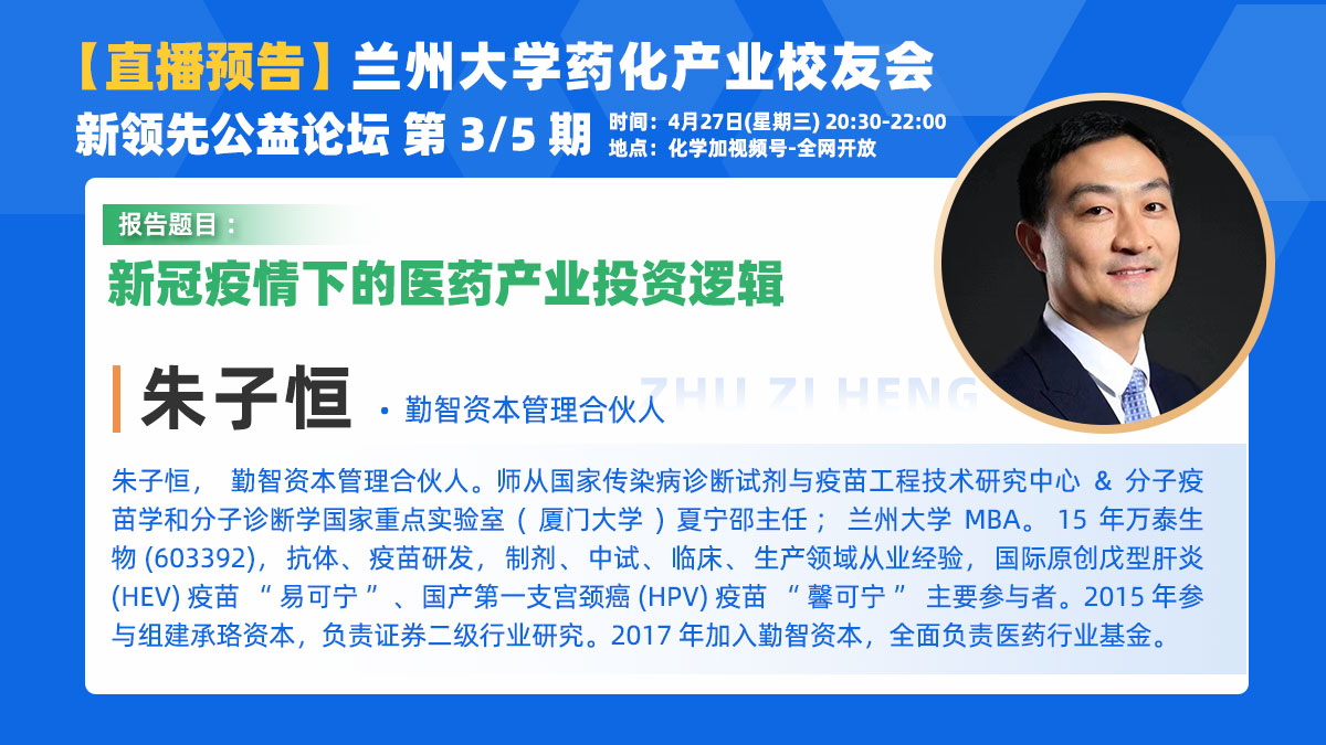 【蘭州大學(xué)藥化產(chǎn)業(yè)校友會新領(lǐng)先公益論壇】勤智資本管理合伙人朱子恒:新冠疫情下的醫(yī)藥產(chǎn)業(yè)投資邏輯...