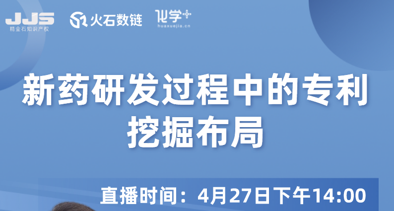 4月27日下午,精金石聯(lián)合火石數(shù)鏈、化學(xué)加以及智慧芽,邀請楊佩佩老師為大家進(jìn)行一場主題為《新藥研發(fā)過程中的專利挖掘布局》的線上直播課程,以伊馬替尼和阿帕替尼為例,教你如何做好新藥的專利布局。...