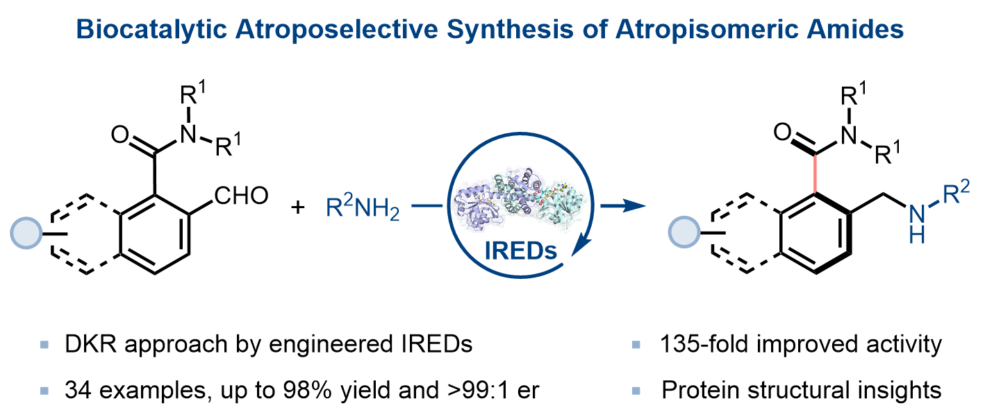 近日,中國醫(yī)學(xué)科學(xué)院/北京協(xié)和醫(yī)學(xué)院醫(yī)藥生物技術(shù)研究所付海根課題組與宋丹青課題組合作,利用亞胺還原酶(IREDs)催化的動態(tài)動力學(xué)拆分策略,首次實現(xiàn)了軸手性芳基酰胺類分子的酶催化不對稱合成,相關(guān)研究成...
