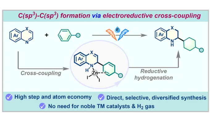 近日,華南理工大學(xué)張珉課題組通過開發(fā)無過渡金屬參與的電化學(xué)合成策略,在室溫條件下利用無隔膜電解池,以鋅板為陽極、鋁板為陰極,由 N-雜芳烴與芳基羧酸衍生物(酯、腈、酰胺等)經(jīng)電還原交叉偶聯(lián),實現(xiàn)了α-...