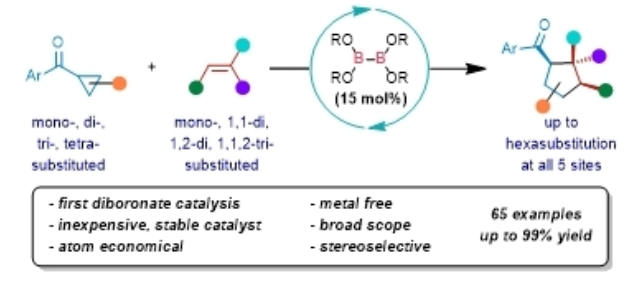 西安交通大學(xué)藥學(xué)院與前沿院的研究人員合作,首次提出利用廉價(jià)易得的四烷氧基二硼試劑作為非金屬催化劑的設(shè)想,并將其成功應(yīng)用于環(huán)丙烷與烯烴的[3+2]環(huán)加成反應(yīng),克服了以前文獻(xiàn)中普遍存在的底物局限性等問(wèn)題。...