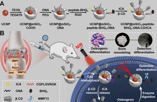 中山大學(xué)腫瘤防治中心楊安力/華南師范大學(xué)黎錦明制備了一種UCNP多功能納米顆粒,用于光控誘導(dǎo)MSC成骨分化治療骨質(zhì)疏松,同時(shí)通過(guò)熒光檢測(cè)成骨分化評(píng)價(jià)治療效果。以上成果發(fā)表在ACS Nano(2022,...