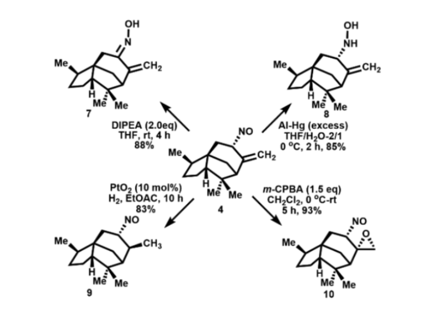近日,當(dāng)代著名有機(jī)合成大師、諾貝爾化學(xué)獎(jiǎng)獲得者、哈佛大學(xué)教授、94歲的E. J. Corey先生在Org. Lett.上再次推出新作:從相同的底物雪松烯(cedrene)出發(fā),與相同的試劑四正丁基亞硝...