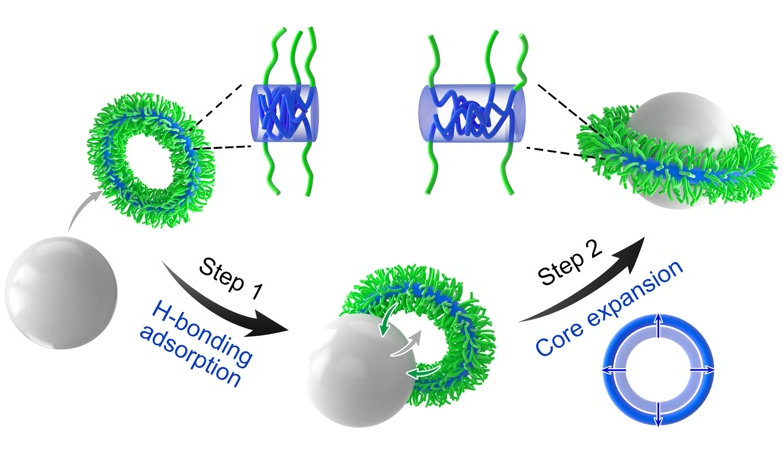 近日,上海交通大學(xué)邱惠斌教授研究團(tuán)隊(duì)利用柔性的聚合物環(huán)狀膠束作為主體單元,報道了一種簡單高效的自適應(yīng)性共組裝策略,用于制備高產(chǎn)率的“土星狀”主客體膠體結(jié)構(gòu)。該工作以“Self-Adaptive” Co...