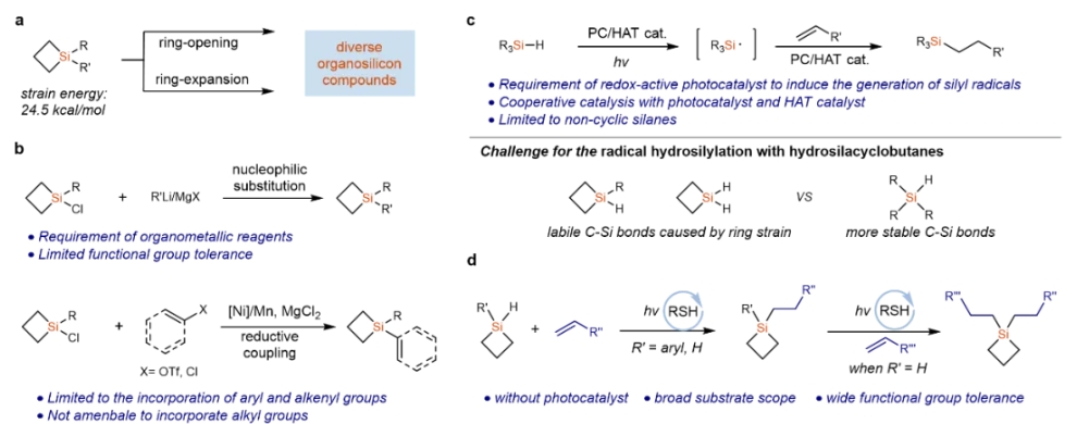 武漢大學(xué)沈曉課題組Nat. Commun.:光誘導(dǎo)未活化烯烴與氫硅雜環(huán)丁烷的環(huán)保持硅氫化反應(yīng)