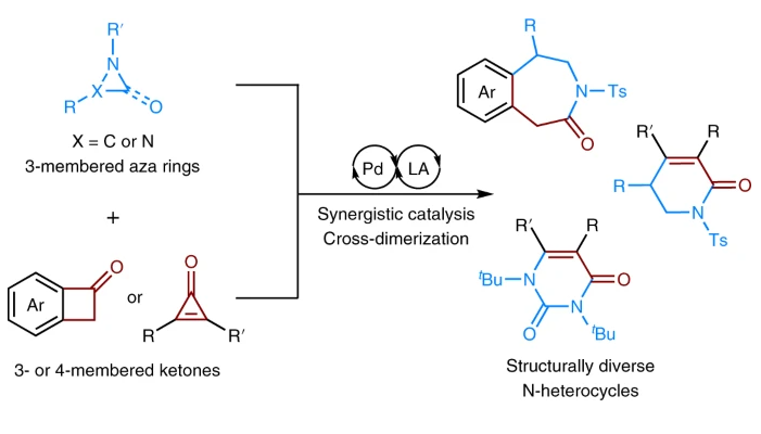 日前,南開大學(xué)元素有機(jī)化學(xué)國(guó)家重點(diǎn)實(shí)驗(yàn)室趙東兵課題組在合成化學(xué)領(lǐng)域取得突破。團(tuán)隊(duì)提出含氮雜環(huán)化合物合成新策略,首次利用張力環(huán)交叉二聚擴(kuò)環(huán)反應(yīng),實(shí)現(xiàn)多類具有重要生物活性的含氮雜環(huán)化合物的高效化學(xué)合成。相...