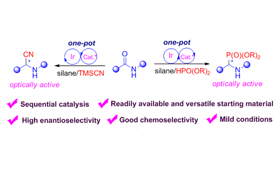 廈門(mén)大學(xué)化學(xué)化工學(xué)院黃培強(qiáng)教授課題組在不對(duì)稱(chēng)催化的酰胺還原官能化方面取得重要進(jìn)展,相關(guān)成果以“Enantioselective Reductive Cyanation and Phosphonylat...
