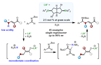 該反應(yīng)不需要借助輔助基團(tuán),是首例以非環(huán)狀α,β-不飽和酮為底物的“直接法”AVMRs。更為重要的是,該工作證明了手性硼催化劑的獨(dú)特優(yōu)勢(shì),其強(qiáng)路易斯酸性可以有效活化單齒、弱配位的酮類(lèi)底物,其大位阻為遠(yuǎn)程...