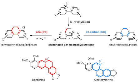 最近,廈門大學化學化工學院張延東教授課題組在雜環(huán)合成新方法和生物堿全合成領(lǐng)域取得重要進展,相關(guān)成果以“Merging C–H Vinylation with Switchable 6π-Electro...