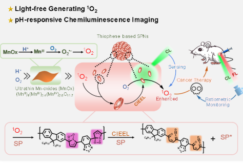 近日,湖南大學(xué)化學(xué)化工學(xué)院宋國勝教授報道了一種新型化學(xué)發(fā)光(CL)成像和化學(xué)動力學(xué)治療(CDT)體系。發(fā)現(xiàn)錳氧化物能夠代替光能激發(fā)半導(dǎo)體聚合物產(chǎn)生CL。同時錳氧化物與半導(dǎo)體聚合物組成納米體系后,能大大...