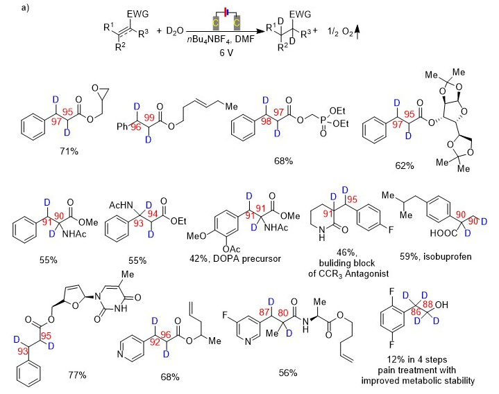 由于H/D的同位素差別非常顯著,在分子中引入氘原子可以調(diào)節(jié)分子的化學(xué)性質(zhì),在藥物設(shè)計(jì),分子影像等方面具有廣泛的應(yīng)用。2017年,氘代丁苯那嗪獲得FDA批準(zhǔn)上市,就是利用了氘代甲氧基在代謝中表現(xiàn)出的高穩(wěn)...