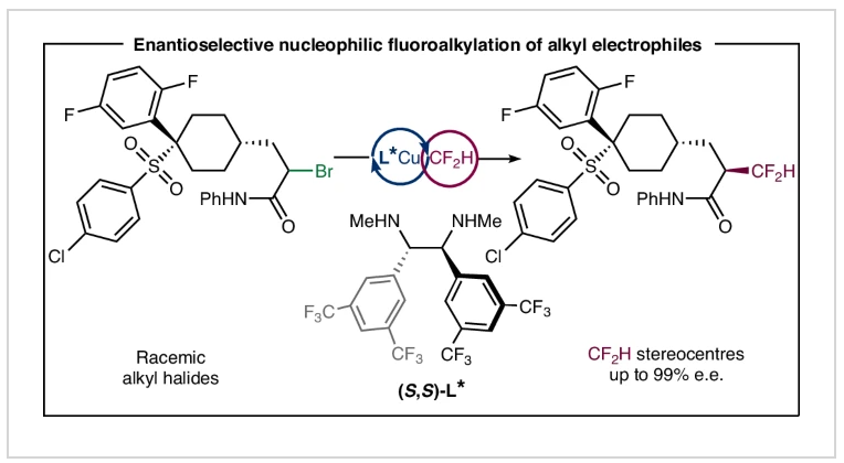 近日,美國辛辛納提大學(University of Cincinnati)Wei Liu課題組報道了銅催化消旋烷基親電試劑的對映收斂二氟甲基化反應。該反應使用烷基自由基中間體,高效實現(xiàn)了含CF2H立體...