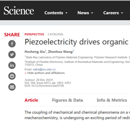 四川大學(xué)高分子國重夏和生教授在《Science》發(fā)表Perspective評述論文“Piezoelectricity drives organic synthesis”