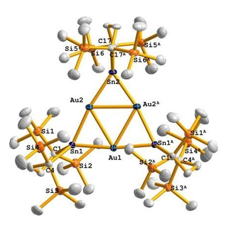 近日,杭州師范大學(xué)有機(jī)硅實(shí)驗(yàn)室李志芳研究員課題組在芳香性金簇的合成方面取得新進(jìn)展,相關(guān)研究成果“A Stable Cyclic (R2SnAu)3 Anion Having In-Plane σ-M?...